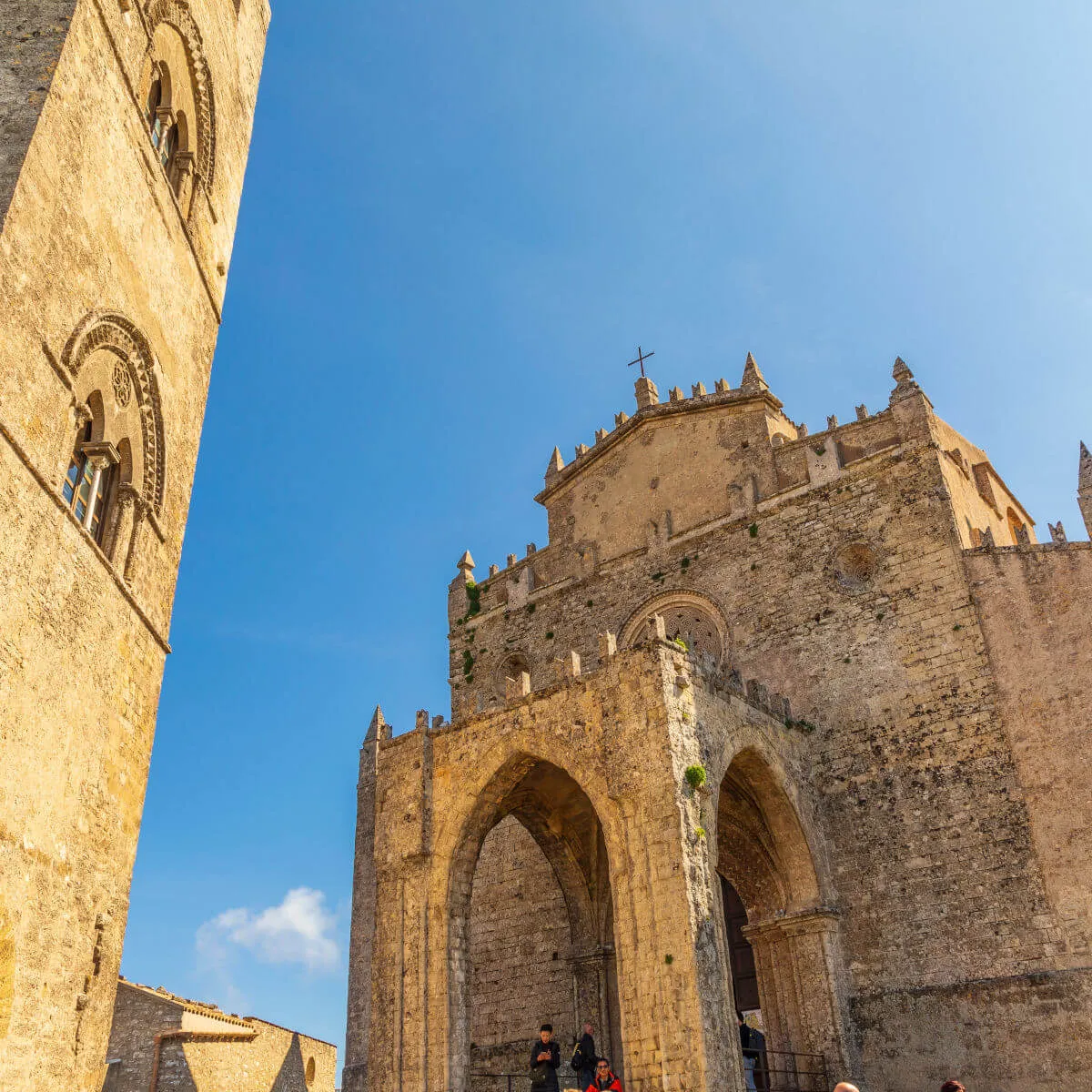 Anschließend geht es hinauf nach Erice, das auf einem Hügel liegt. Dieses kleine, mittelalterliche Städtchen mit seinen engen Gassen und antiken Gebäuden hat etwas Märchenhaftes an sich. Es ist ideal für einen Spaziergang und an klaren Tagen erschließt sich ein atemberaubender Ausblick über das Meer und die Landschaft. Lassen Sie sich die typischen genovesi von Maria Grammatico nicht entgehen – das Gebäck ist einfach köstlich.