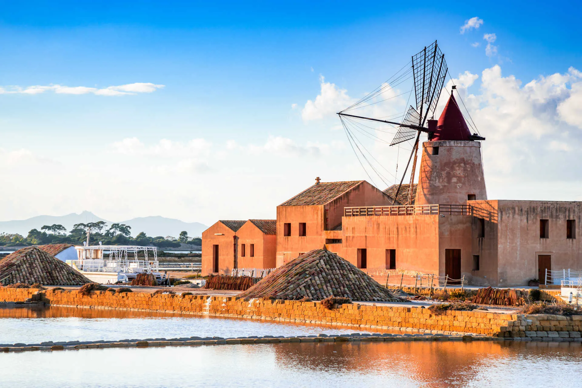 Approcher Trapani par la mer offre une vue panoramique sur les salines et leurs moulins à vent historiques. Au coucher du soleil, lorsque les salines virent au rose, l'atmosphère devient magique et vous laissera des souvenirs inoubliables.