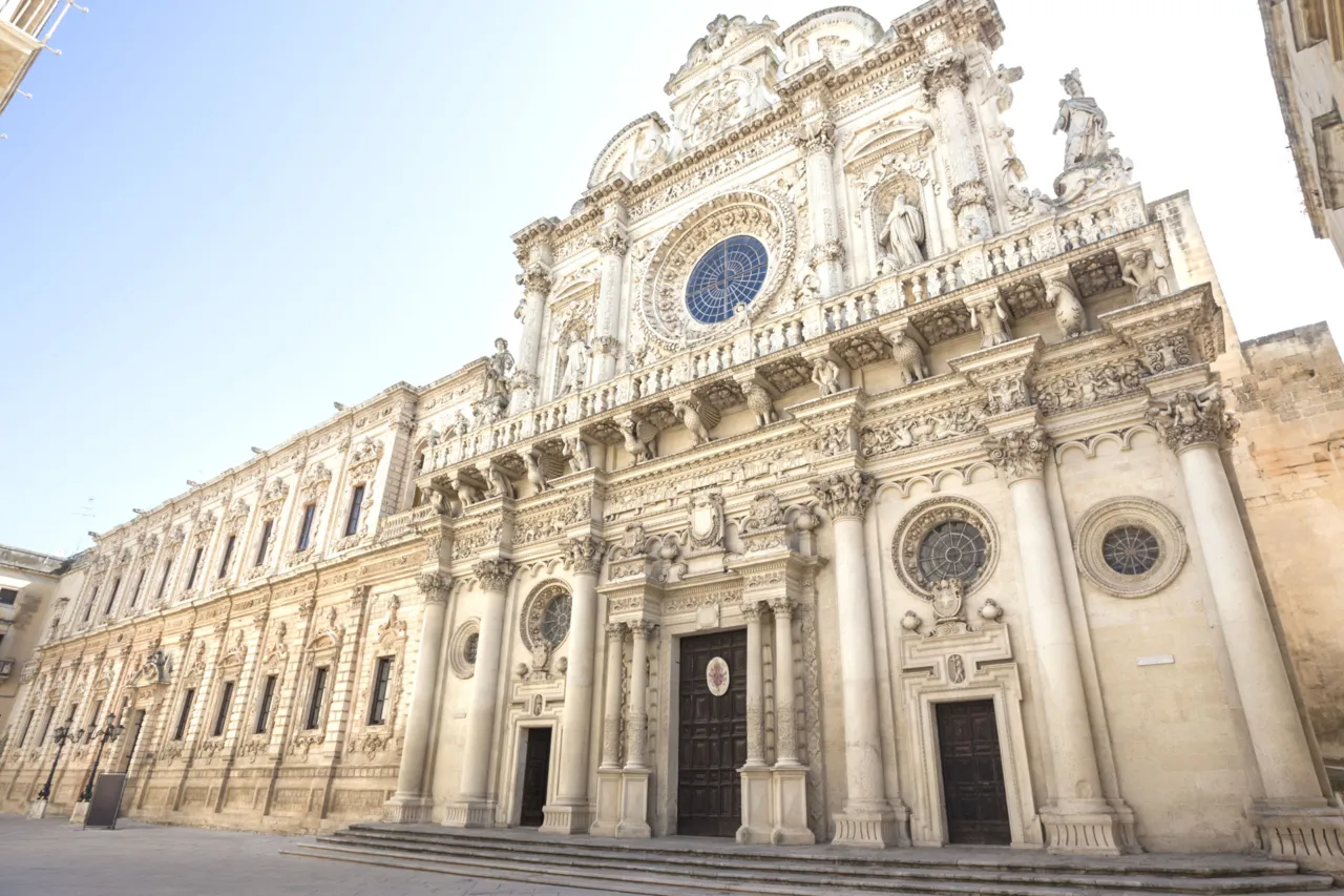 Notre voyage commence par Lecce, ville baroque et véritable joyau d'art et d'architecture. Avec ses charmantes ruelles pavées, ses anciennes petites places, les façades décorées des églises et des palais en pierre de Lecce, cette ville est un musée à ciel ouvert. Surnommée "la Florence du Sud", Lecce regorge de trésors qui demandent du temps pour être découverts. Mais si vous voulez savoir quoi voir à Lecce absolument, car vous manquez peut-être de temps, ne manquez pas la célèbre Basilique de la Sainte-Croix, l'Église de Sainte-Irène et l'impressionnante Place du Dôme, exemples emblématiques du baroque leccese. Ne manquez pas non plus l'Amphithéâtre Romain, datant de l'époque augustéenne.
