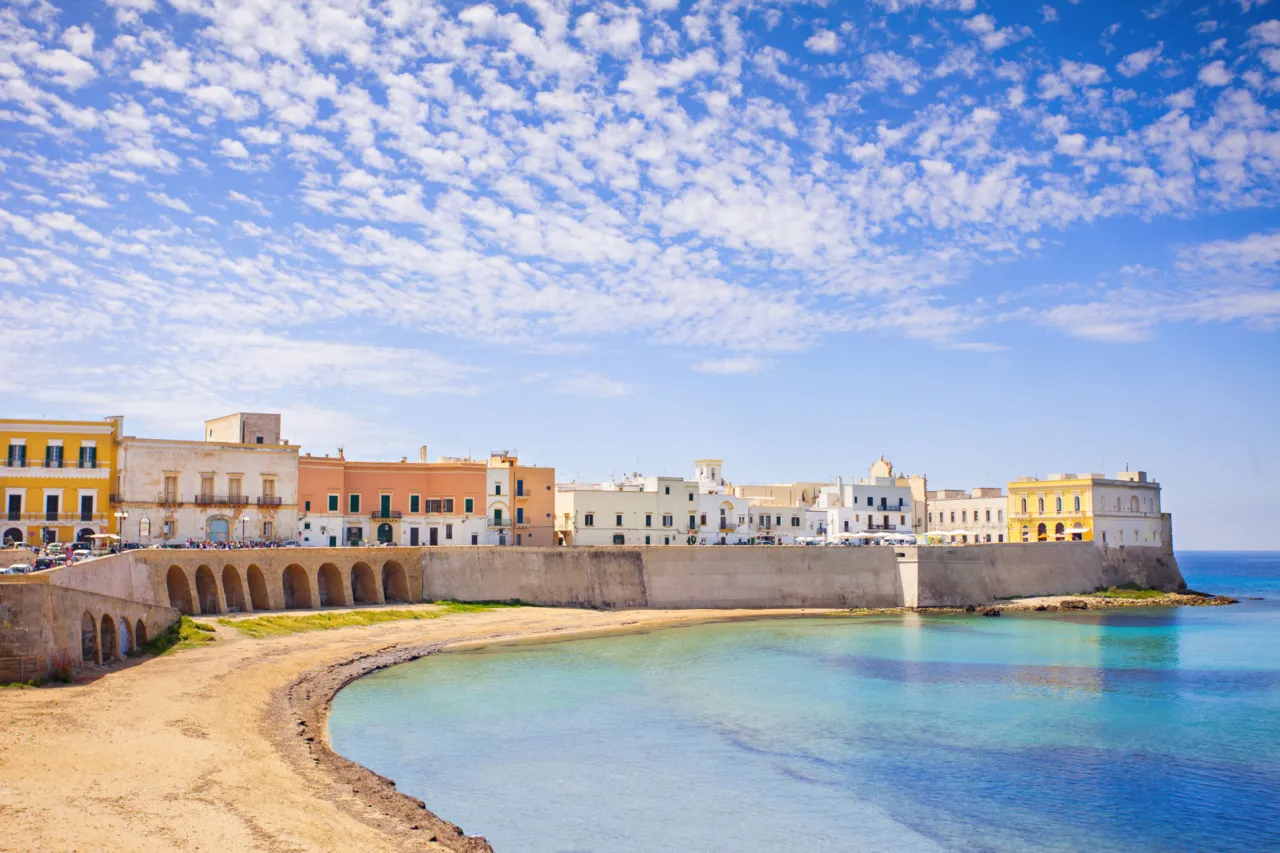 Gallipoli, la "Cité Belle" du grec kale polis, est située sur une île qui s'avance dans la mer Ionienne et reliée à la terre ferme par un pont étroit. Ce village très ancien fascine par son architecture typique des Pouilles, ses ruelles riches en artisanat traditionnel et ses restaurants typiques, ainsi que l'ambiance joyeuse de sa vie nocturne.