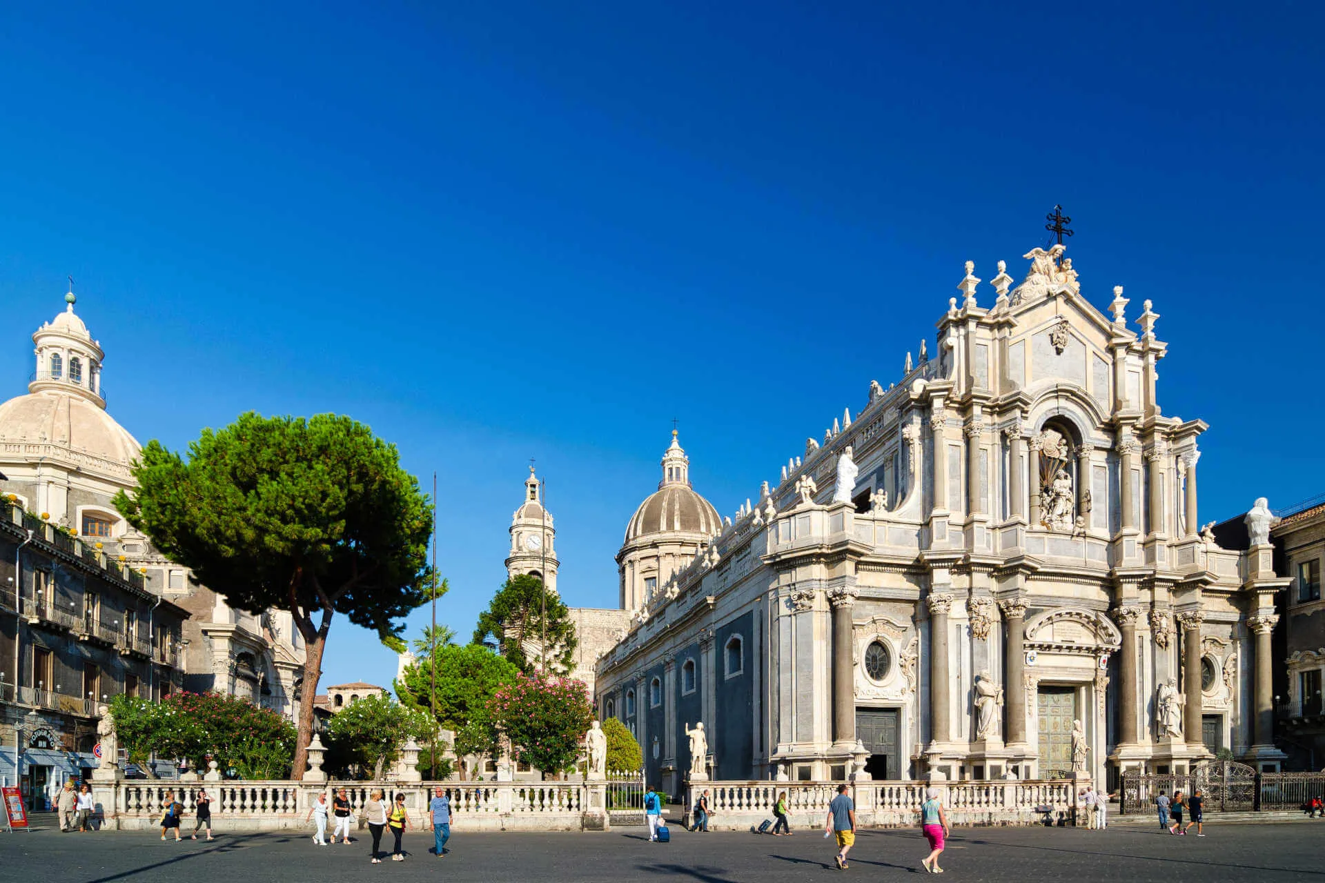 Vibrante et pleine d'énergie, Catane s'élève au pied de l’Etna, offrant un mélange passionnant d'histoire, de culture et de traditions culinaires. L’imposante cathédrale, dédiée à sainte Agathe, la sainte patronne de Catane, domine le cœur de la ville. Située sur la pittoresque Piazza del Duomo, c’est un bijou d'architecture baroque, mettant en valeur la richesse historique et artistique de la ville. En se promenant dans les rues de Catane, on découvre une succession de palais historiques, d'églises baroques et de places animées, racontant l'histoire d'une ville toujours en mouvement.